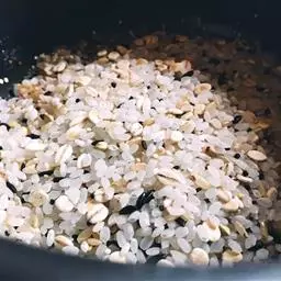 糯米淘洗干净后,浸泡一晚上后,控干水分,上笼蒸约40分钟;紫菜和虾米泡软,并将紫菜切成细末。