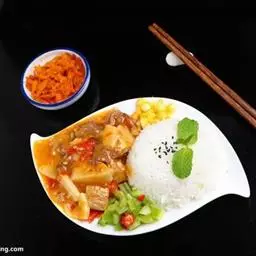 咖喱牛肉饭是一道菜品,起源于香料大国印度,使用印度特有的香料咖喱粉制作而成。