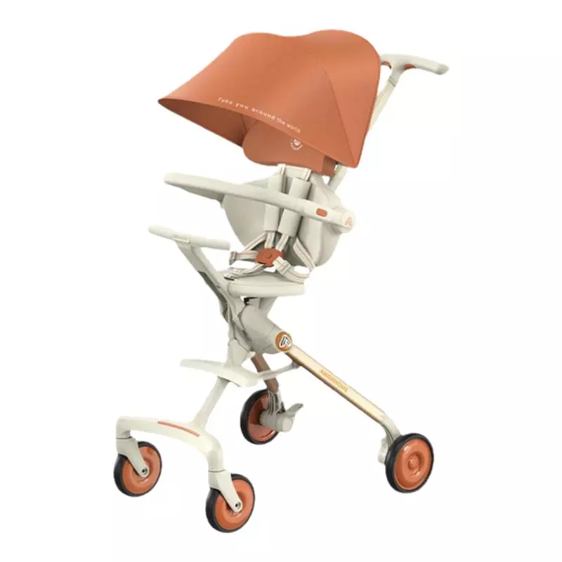 这种车在市面上比较少见,除可平躺以为外,座椅独特的360°旋转,并且不用提起座位。并有 0°、90°、180°、270°四种不同角度定位,方便宝宝不同的方向观看,0°方向向前看,90°和270°方向可以看路两边的风景不用看大人的脚后跟和去闻汽车尾气,180°的方向正面对着妈妈。