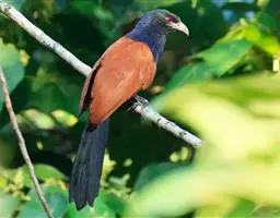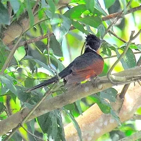 红翅凤头鹃:体长约38厘米,顶冠及凤头黑色,具显眼的直立凤头,背及尾黑色而带蓝色光泽,翅栗红色,…