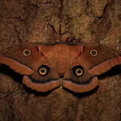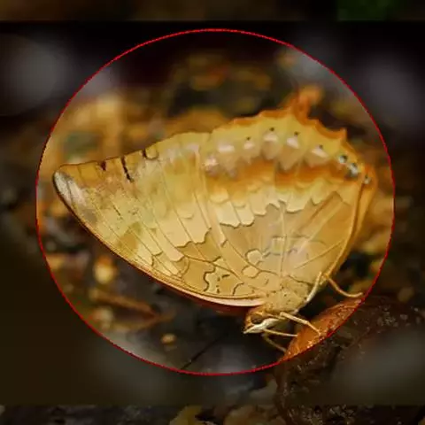 孔雀蛱蝶展翅宽50~60mm。翅膀表面红色,上、下翅有一大型彩色眼纹;翅膀腹面淡褐色,拟似烟熏枯叶…