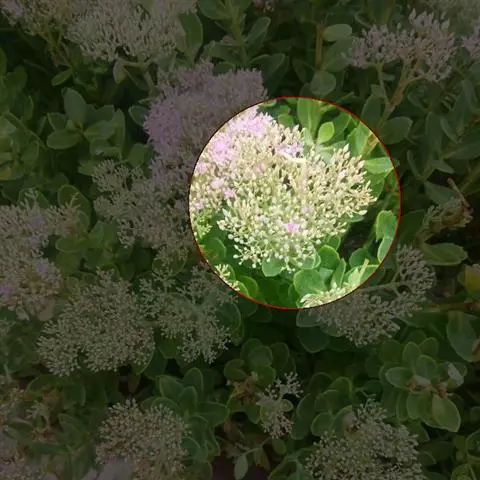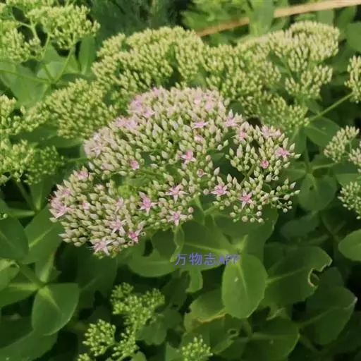 八宝(学名:Hylotelephium erythrostictum (Miq.) H. Ohba):多年生草本。块根胡萝卜状。茎直立,高30-70厘米,不分枝。叶对生,少有互生或3叶轮生,长圆形至卵状长圆形。伞房花序顶生;花密生,直径约1厘米,花梗稍短或同长;萼片5,卵形,长1.5毫米;花瓣5,白色或粉红色,宽披针形,长5-6毫米,渐尖。花期8-10月。