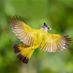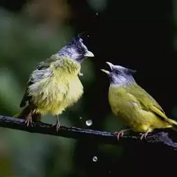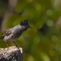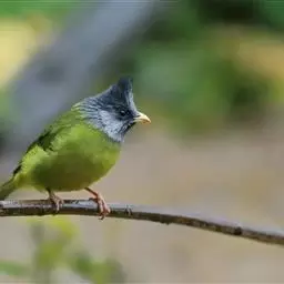 凤头雀嘴鹎:属小型鸟类,体长18-22厘米。嘴粗短、呈象牙色或乳黄色,前额和脸灰色,头顶黑色,…