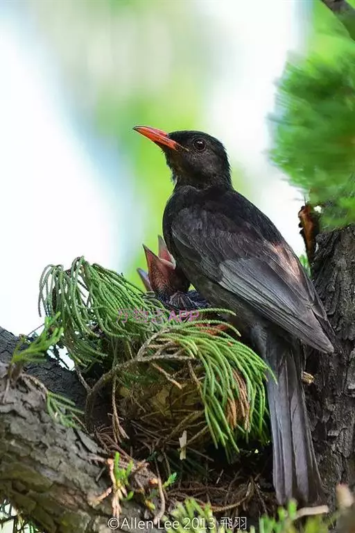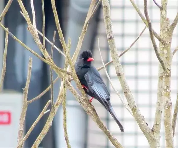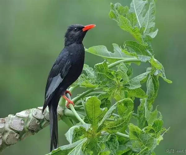 黑短脚鹎(学名:Hypsipetes leucocephalus):是鸟纲、鹎科的中型鸟类,体长22-26厘米。嘴鲜红色,脚橙红色,尾呈浅叉状。羽色有两种色型,一种通体黑色,另一种头、颈白色,其余通体黑色。野外特征极明显,容易识别。