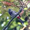 虹膜黑褐色,嘴鲜红色,脚橘红色。