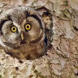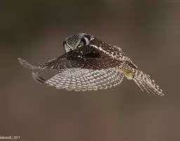 栗鸮:是鸟纲、草鸮科的猫头鹰。体长约29厘米,体重311-360克。是一种中等体型的红褐色鸮。…
