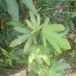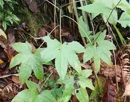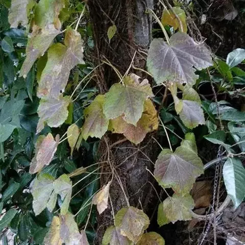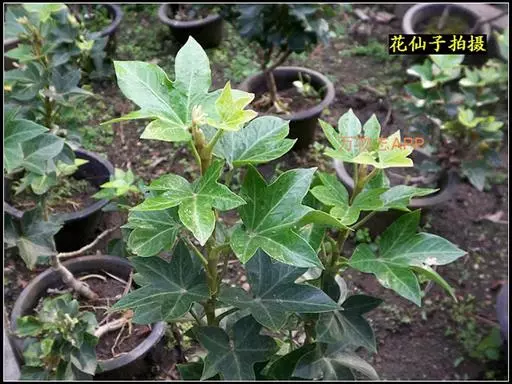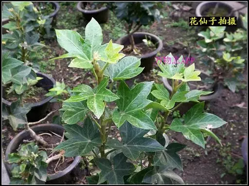 常绿性藤蔓植物,高可达1米以上。初生时茎呈草质,后渐转木质化。单叶互生,掌状五裂,叶端渐尖,叶基心形,叶宽12~16厘米,全缘,波状有扭曲,新叶密被毛茸,老叶浓绿而光滑。叶柄长8~10厘米,柄基呈鞘状与茎枝连接。成年植株在秋天开淡绿色小花。 高可达1米以上。