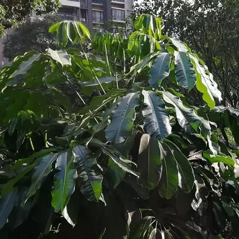 昆士兰伞木,吕松鹅掌柴 ,称昆石兰遮树,澳洲鸭脚木、方式叶鹅掌柴、伞树、大叶伞。叶片阔大,柔软下…