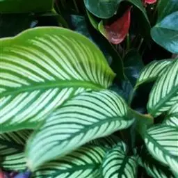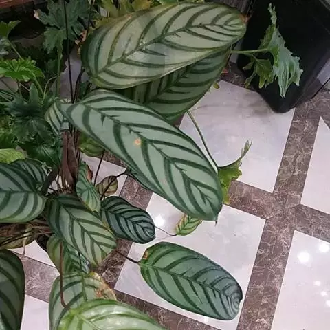 豹纹竹芋(学名:Maranta leuconeura E.Morren)竹芋科,肖竹芋属多年生常绿草本观叶植物。株高可达30厘米,多分枝,叶宽矩圆形,正面有光泽淡绿色,叶背灰绿色。叶倒卵形,柄基部鞘状。总状花序,花成对,苞片少数,萼片披针形;花冠管圆柱形,基部肿胀,花柱粗。坚果状,不开裂;种子1枚。