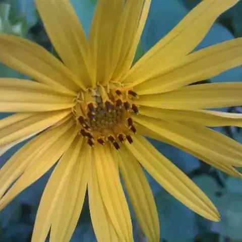 头状花序单生茎枝端,直径4~5厘米,总苞片1~2层,披针形或长圆状披针形,外层稍长于内层,顶端渐尖,小花黄或橙黄色,长于总苞的2倍,舌片宽达4~5毫米;管状花檐部具三角状披针形裂片,瘦果全部弯曲,淡黄色或淡褐色,外层的瘦果大半内弯,外面常具小针刺,顶端具喙,两侧具翅脊部具规则的横折皱。花期4~9月,果期6~10月。