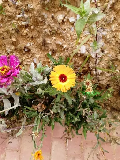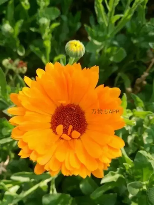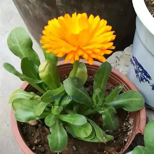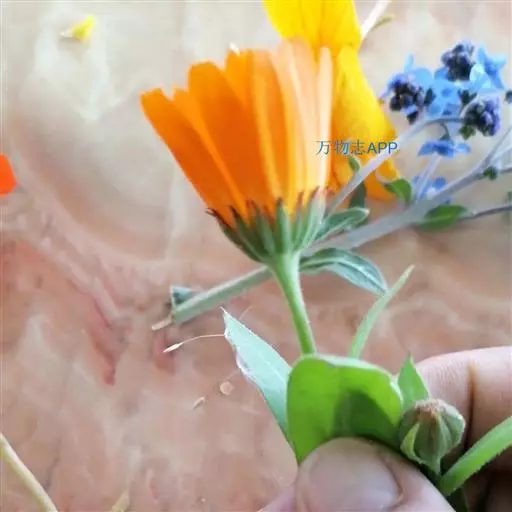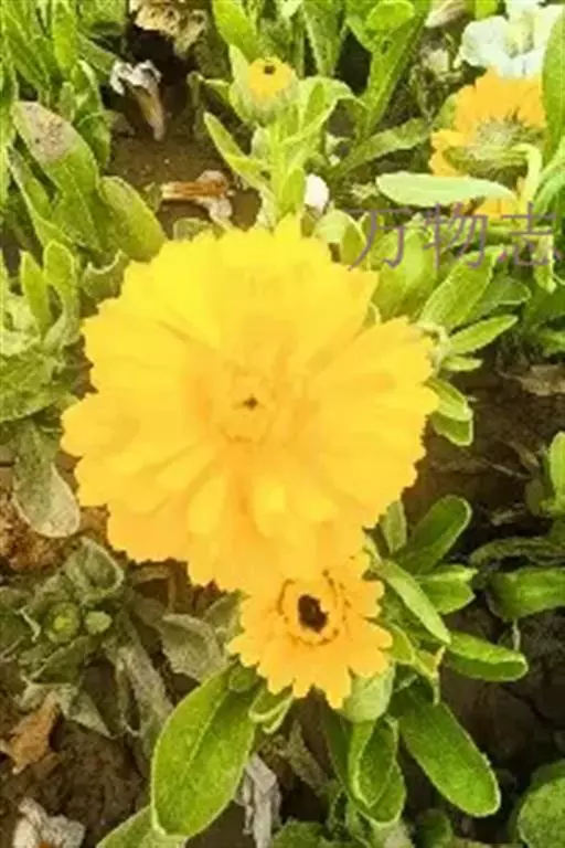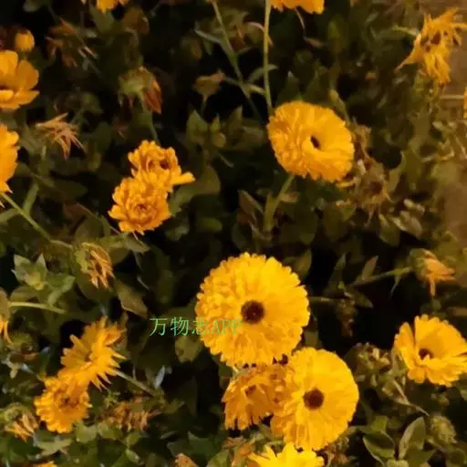 金盏花(Calendula officinalis L.),为菊科两年生草本,全株被毛。叶互生,长圆形。花黄色或橙黄色,花期4~9月,果期6~10月。喜生长于温和、凉爽的气候,怕热、耐寒。原产于南欧、地中海沿岸一带。
