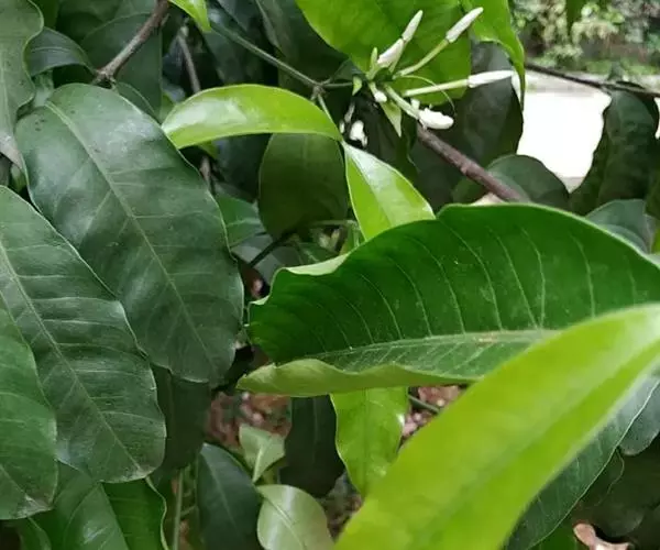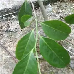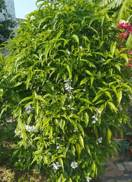 乔木,高达15米;枝条无毛,淡绿色。叶革质,卵状长圆形,长8-22厘米,宽4-8.5厘米,两面无毛,略具光泽,顶端急尖,基部阔楔形;侧脉每边10-18条,明显;叶柄长5-7毫米。聚伞花序顶生,长约7厘米;苞片长7毫米,披针形,渐尖,两面被灰色微毛;花萼裂片长圆状披针形,长4-6毫米,宽2毫米,边缘有缘毛,两面被微毛;花冠白色,花冠筒长2.5厘米,内面喉部被长柔毛,裂片长圆形,长1.5-2厘米,宽4-5毫米;花药长圆状披针形,基部圆;花盘匙形,比心皮长,长1.5毫米,宽0.7毫米;子房由2个离生心皮组成,长1毫米,被短柔毛,花柱细长,柱头棍棒状,每心皮有胚珠2颗。核果未熟时绿色,成熟后变黑色,近椭圆形,长2.5厘米,直径1.5厘米,顶端圆形;种子1-2颗,长1.5厘米,直径5毫米。花期4-6月,果期7-12月。