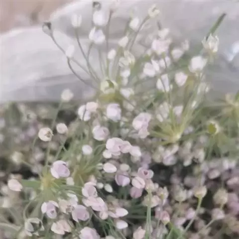 花薹为伞形花序,外有总苞,开花时总苞单侧开裂脱落,有小花800~3000朵,淡紫或粉红色,花丛生成球,鲜艳美观。