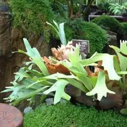 鹿角蕨是鹿角蕨科附生植物,鹿角蕨的叶有二型,营养叶较小,呈圆形、椭圆形或扇形,…