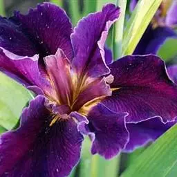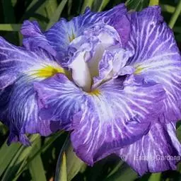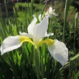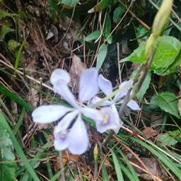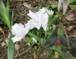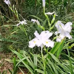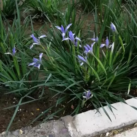 亮叶鸢尾为常绿多年生草本植物。叶面光滑、亮绿色,花茎扁平叶状。原产于巴西。