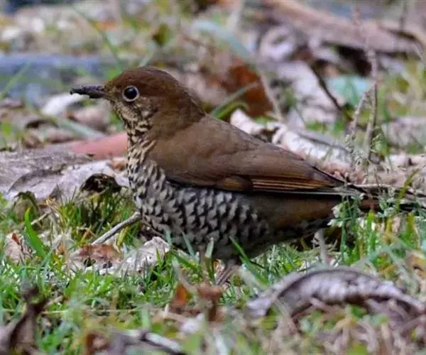 白眉歌鸫,是雀形目鸫科鸫属鸟类。体型略小并具有褐色斑点的歌鸫,上体橄榄褐色,眉纹白色,脸部斑驳,…