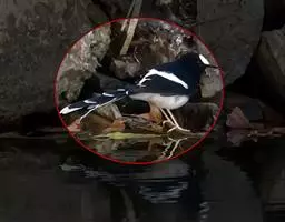赭红尾鸲:小型鸟类,体长13-16厘米。雄鸟前额、头侧、颈侧、颏至胸概黑色,头顶和背灰色或黑色,…