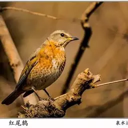 红尾鸫是雀形目鸫科鸫属鸟类,又名红尾斑鸫、斑鸫。雄鸟整个上体自额至尾上覆羽为灰褐色,…