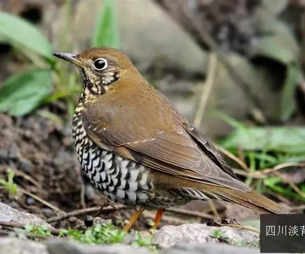 体型略大(26厘米)的地鸫。上体全红褐色,外侧尾羽端白,浅色眼圈明显,翼部白色斑块在飞行时明显,但停歇时不显露。与长尾地鸫的区别在尾较短,胸具鳞状斑纹而非黑色横纹,翼上横纹较窄而色暗。