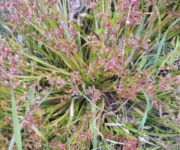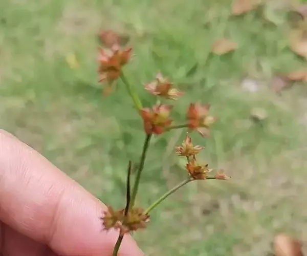 花序由5-20(-30)个头状花序组成,排列成顶生复聚伞花序,花序常分枝,具长短不等的花序梗;头状花序半球形至近圆球形,直径7-lO毫米,有(4-)8-15(20)朵花;叶状总苞片常1枚,线形,短于花序;苞片多枚,宽卵形或卵状披针形,长2-2.5毫米,顶端锐尖或尾尖,膜质,背部中央有1脉;花具短梗;花被片线状披针形至狭披针形,长3.5-4毫米,宽约1毫米,内外轮等长或内轮者稍短,顶端尖锐,背面有纵脉,边缘狭膜质,绿色或淡红褐色;雄蕊通常3枚,花药线形,长0.9-1毫米,淡黄色;花丝长1.2-1.4毫米;花柱甚短;柱头3分叉,细长,常弯曲。