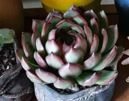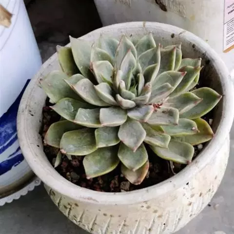大和锦是景天科拟石莲花属的多肉植物。肉质叶排成紧密的莲座状,广卵形至散三角卵形,背面突起呈龙骨状,…