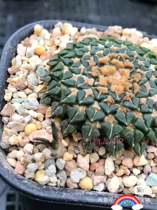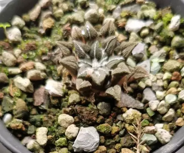 姬牡丹,小型种, 扁平放射呈星状, 通常单生, 老株可能群生, 生长点有群聚的白毛.其特征是疣突较小而紧凑,表面光滑。姬牡丹的疣呈小的阔三角形,疣中沟明显且下凹,有把疣一分两瓣而且预对折的感觉,说的再通俗点就是疣的两瓣凸起略上翻。其根呈萝卜状, 实生有巨大块根.