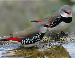 斑胸草雀,又名金山珍珠,是雀形目梅花雀科的小型鸟类。该鸟全长10厘米左右,胸和尾羽有黑白斑纹,雄鸟…