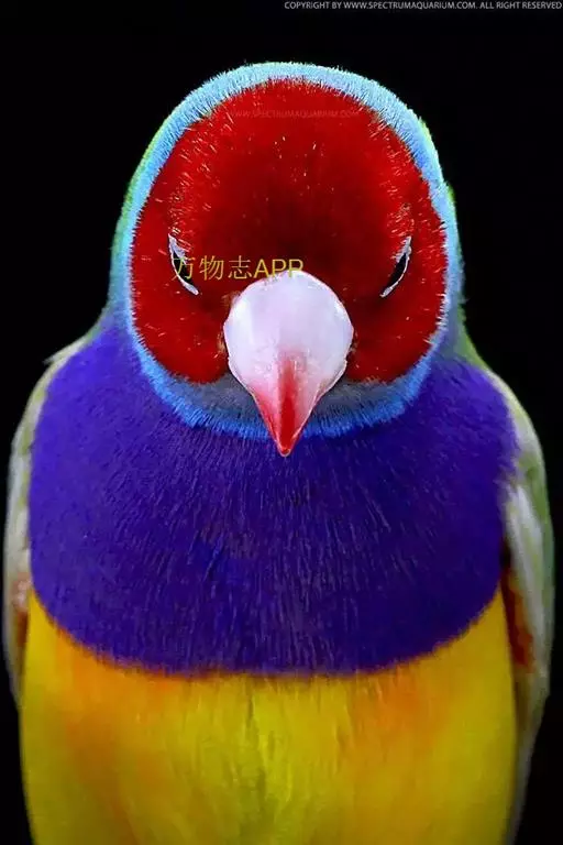 在生物学上,七彩文鸟属于梅花雀科,鹦雀属。从头到尾,长度约12-15厘米,体重约14-17克。