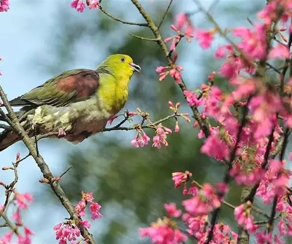 红翅绿鸠为留鸟,仅有少部分迁徙。栖息于海拔2000米以下的山地针 叶林和针阔叶混交林中,有时也见于林缘耕地。