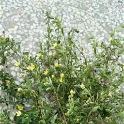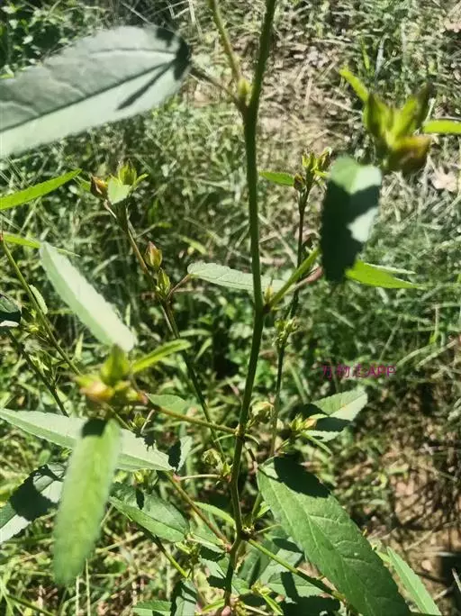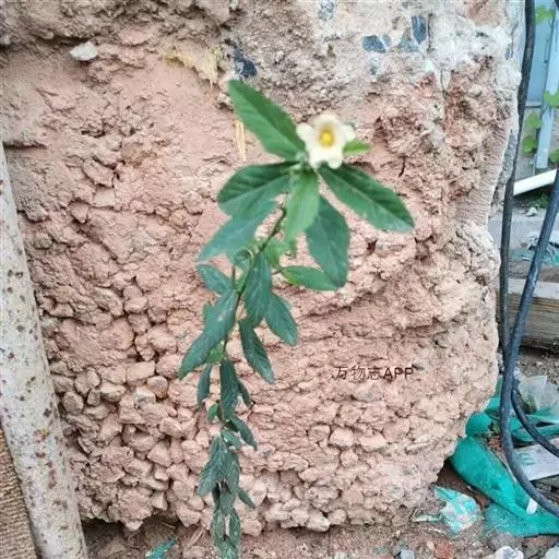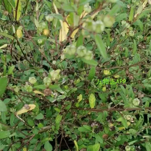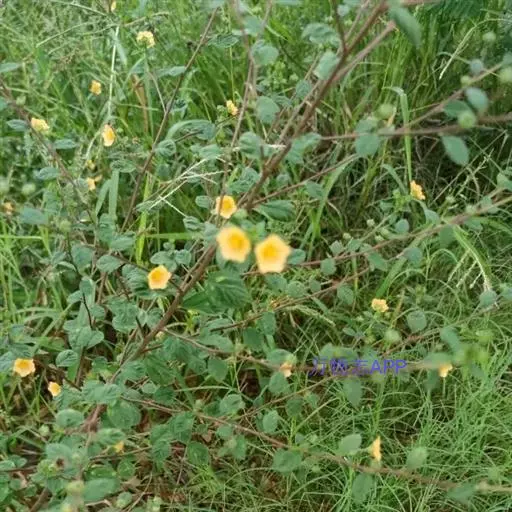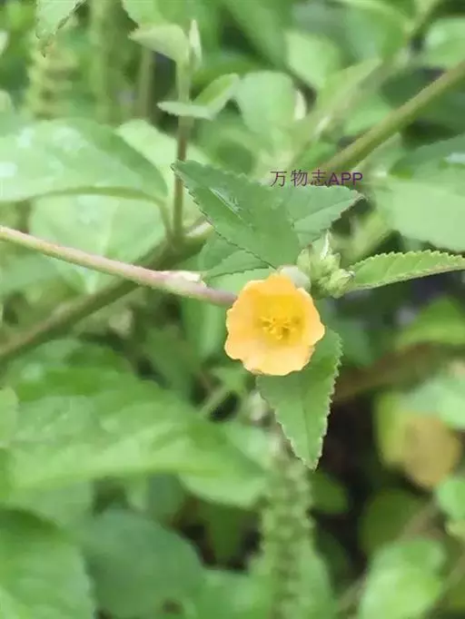 黄花稔,直立亚灌木状草本,高1-2m。分枝多小枝被柔毛至近无毛。叶互生;叶柄长4-6mm,疏被柔毛;托叶线形,与叶柄近等长,常宿存;叶披针形,长2-5cm,宽4-10mm,先端短尖或渐尖,基部圆或钝,具锯齿,两面均无毛或疏被星状柔毛,上面偶被单毛。花单朵或成对生于叶腋,花梗长4-12mm,被柔毛,中部具节;萼浅杯状,无毛,长约6mm,下半部合生,裂片5,尾状渐尖;花黄色,直径8-10mm,花瓣倒卵形,先端圆,基部狭,长6-7mm,被纤毛;雄蕊柱长约4mm,疏被硬毛。蒴果近圆球形,分果爿4-9,但常为5-6,长约3.5mm,先端具2短芒,果皮具网状皱纹。花期冬、春季。