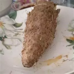 穿龙薯蓣:根茎类圆柱形,稍弯曲,有分枝,长10-~5cm,直径0.3~1.5cm。表面黄白色或棕黄色,有不规则纵沟,具点状根痕及偏于一侧的突起茎痕,偶有膜状浅棕色外皮和细根。质坚硬,断面平坦,白色或黄白色,散有淡棕色维管束小点。气微,味苦涩。
