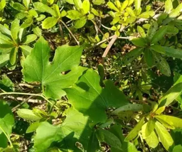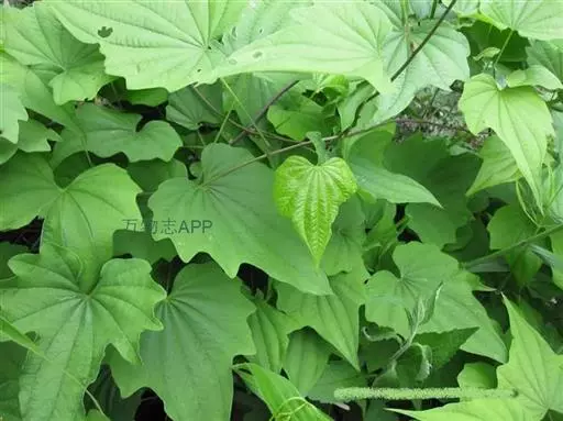 缠绕草质藤本。根状茎横生,圆柱形,多分枝,栓皮层显著剥离。茎左旋,近无毛,长达5米。单叶互生,叶柄长10~20厘米;叶片掌状心形,变化较大,茎基部叶长10~15厘米,宽9~13厘米,边缘作不等大的三角状浅裂、中裂或深裂,顶端叶片小,近于全缘,叶表面黄绿色,有光泽,无毛或有稀疏的白色细柔毛,尤以脉上较密。花雌雄异株。雄花序为腋生的穗状花序,花序基部常由2~4朵集成小伞状,至花序顶端常为单花;苞片披针形,顶端渐尖,短于花被;花被碟形,6裂,裂片顶端钝圆;雄蕊6枚,着生于花被裂片的中央,药内向。雌花序穗状,单生;雌花具有退化雄蕊,有时雄蕊退化仅留有花丝;雌蕊柱头3裂,裂片再2裂。蒴果成熟后枯黄色,三棱形,顶端凹入,基部近圆形,每棱翅状,大小不一,一般长约2厘米,宽约1.5厘米;种子每室2枚,有时仅1枚发育,着生于中轴基部,四周有不等的薄膜状翅,上方呈长方形,长约比宽大2倍。花期6~8月,果期8~10月。
