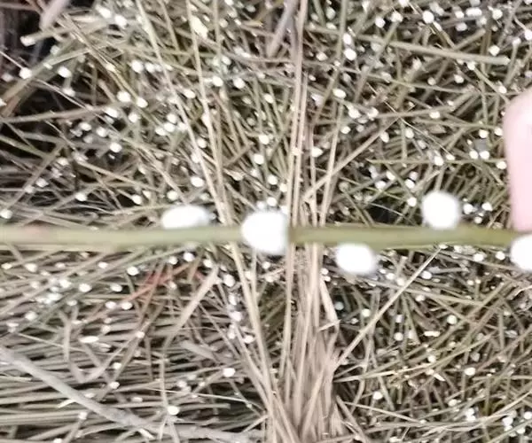谷精草(学名:Eriocaulon buergerianum)一年生草本,须根细软稠密,叶基生,长披针状条形。头状花序呈半球形,底部有苞片层层紧密排列,苞片淡黄绿色,上部边缘密生白色短毛,花序顶部灰白色。花茎纤细,长短不一,淡黄绿色,有光泽,稍扭曲,有棱线数条。蒴果3裂。