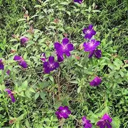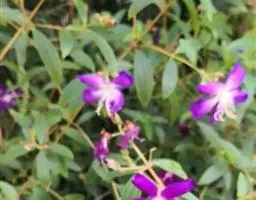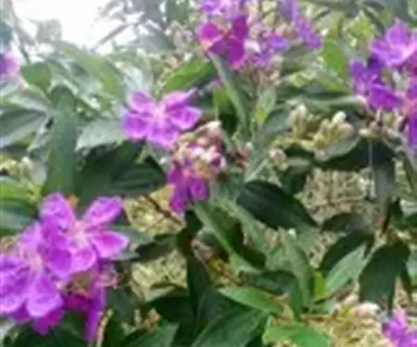 银毛野牡丹(Tibouchina aspera var.asperrima Cogn),野牡丹科蒂牡花属常绿小灌木。花枝长,花多而密,花色独特艳丽,叶质感较好,引人注目。耐修剪,花后修剪可促进枝条萌发,同时可调整株形,扦插繁殖,适应性和抗逆性强,是优良的园林观赏植物。