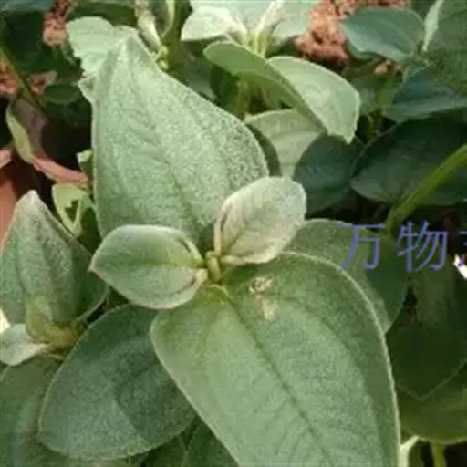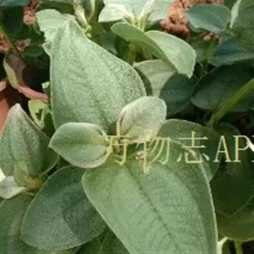 常绿小灌木,高约1m。冠开展,茎直立,四棱形,分枝多。叶柔软,阔卵形,长8~10cm,宽4~6cm,脉3~5条,表面亮绿色,背面灰绿色,密被茸毛,粗糙。圆锥花序直立,顶生,长20~30cm;花瓣紫色。花期5~7月,盛花期6月 。