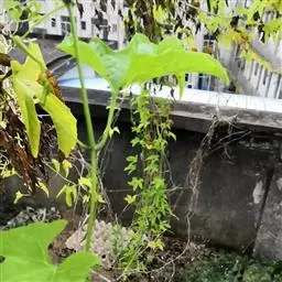 3.叶:叶互生,叶片与卷须对生。叶片呈掌状五角形,中央一角特别长。绿色至深绿色,全缘。叶面较粗糙,叶背的叶脉上有茸毛。
