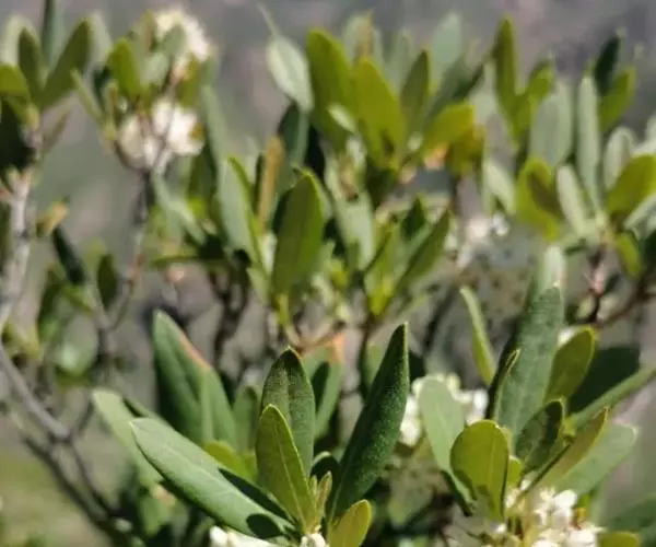 性状鉴别: 叶片多反卷,有的破碎,完整者展平后是长椭圆形或倒披针形,长2~5cm,宽0.5~1.5cm,先端钝尖,基部楔形,全缘,上面灰绿色或棕褐色,有灰白色毛茸,下面淡黄绿色,有密集的棕红色小点。主脉于下面突起,侧脉4~7对。叶柄长约3mm。近革质,易碎。枝圆柱形,顶端有圆锥花序,有多数小花,花冠钟形,白色,外被淡棕色卵状苞片。气芳香,味苦。以叶片完整、色暗绿者为佳。