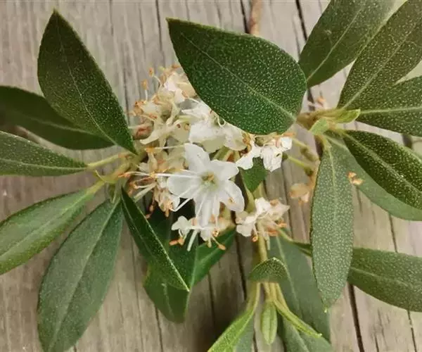 常绿灌木,高可达2.5m,茎灰棕褐色;枝条细瘦。幼枝被鳞片及细柔毛。叶近革质,倒披针形、长圆状椭圆形至披针形,长(1.5-)3~4(-6)cm,宽0.4~1.2(-2.5)cm,顶端钝,急尖或圆,具小突尖,基部狭楔形,上面深绿色,有光泽,常被疏鳞片,下面黄绿色,被淡或深棕色有宽边的鳞片,鳞片相互重叠、邻接或相距为其直径的角状披针形或披针状线形,外面被鳞片,被缘毛;花冠钟状,长4~8(-10)mm,外面被鳞片,内面无毛,花裂片5,较花管稍长;雄蕊10,花丝无毛;子房长1~3mm,5~6室,密被鳞片,花柱与雄蕊等长或较短,无鳞片。蒴果长圆形,长(4-)5~6(-8)mm,被疏鳞片。花期5~6月,果期8~11月。