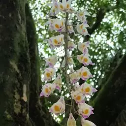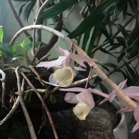 美花石斛是兰科石斛属多年生草本。茎柔弱,斜立或下垂,呈细圆柱形,有时分枝;叶互生于茎上,…