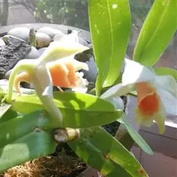 棒节石斛(学名:Dendrobium findlayanum Par. et Rchb. f.):茎直立或斜立,不分枝,具数节。叶革质,互生于茎的上部,披针形。总状花序通常从落了叶的老茎上部发出,具2朵花;花白色带玫瑰色先端,开展;花瓣宽长圆形,长3.5-3.7厘米,宽1.8厘米,先端急尖,基部稍收狭为短爪,具5条脉;唇瓣近圆形,凹的,宽约2.4厘米,先端锐尖带玫瑰色,基部两侧具紫红色条纹;唇盘中央金黄色,密布短柔毛。花期3月。