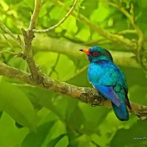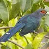 绿嘴地鹃:体形似小鸦鹃,但羽色大致绿灰;嘴绿色,头侧眼的周围有一裸区;后爪弯曲。虹膜赤红色,…