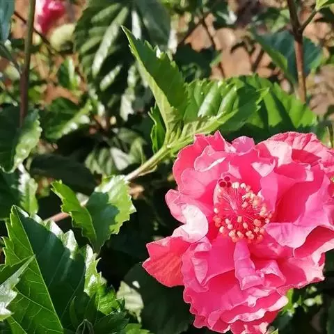 观赏:玫瑰茄花紫红色,色泽艳丽,花冠与花尊美丽别致,是美化环境极好的观赏植物。
