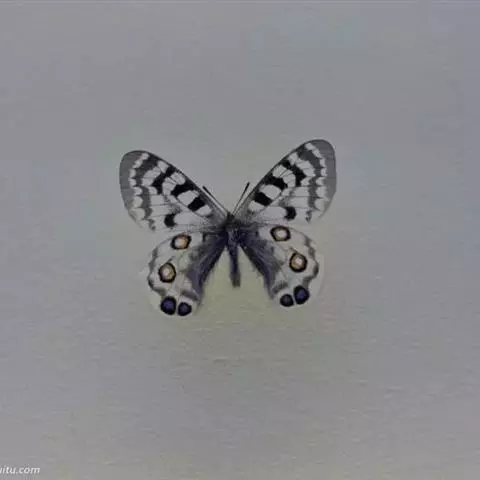 翅白至灰白色,前翅前缘浅灰色。斑点黑色,中点远大于其他斑点.夕卜线和亚缘线在和M脉之间的斑点较同列其他斑点略大;亚缘线和缘线2列斑点整齐。翅反面颜色斑点同正面。