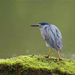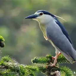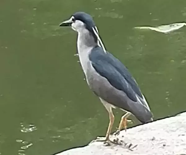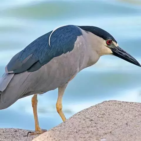 夜鹭(学名:Nycticorax nycticorax)是中型涉禽,体长46-60厘米。体较粗胖,颈较短;嘴尖细,微向下曲,黑色;胫裸出部分较少,脚和趾黄色;头顶至背黑绿色而具金属光泽;上体余部灰色;下体白色;枕部披有2-3枚长带状白色饰羽,下垂至背上,极为醒目。