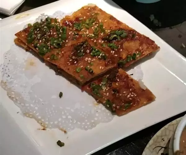 【食品特点】:包裹在有韧性的春饼里的清甜蟹肉是这道菜的灵魂所在。芽菜和菊花瓣更是让一盘子的菜品生动起来。