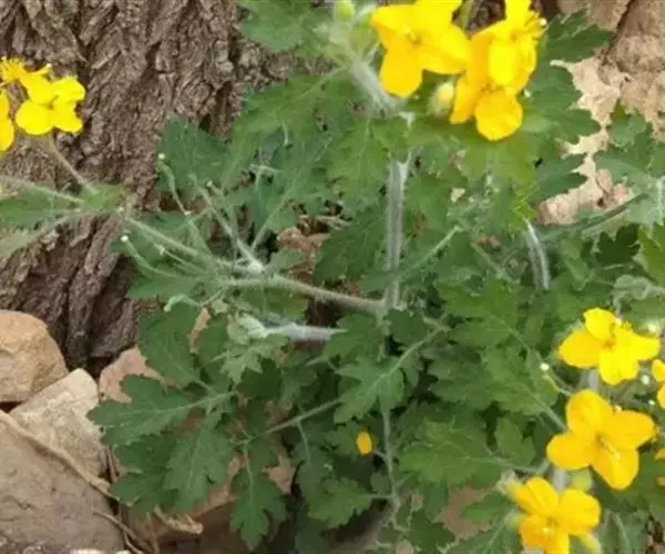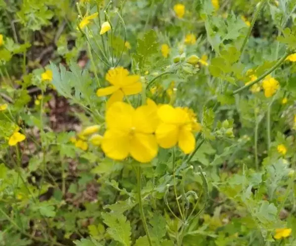 白屈菜是多年生草本,高30-60(-100)厘米。主根粗壮,圆锥形,侧根多,暗褐色。茎聚伞状多分枝,分枝常被短柔毛,节上较密,后变无毛。