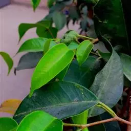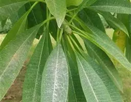 粗壮木质针形或倒卵形或长椭圆形,长8-15厘米,宽3-4.5厘米,先端尖尾状,顶端渐尖或锐尖,基部楔形或锐尖,稀圆形;侧脉多至15对,在叶背明显;叶柄长3-5毫米。