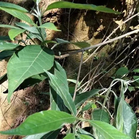 灌木或小乔木,高1-6米,全株密被灰色或褐色柔毛或短绒毛,但老枝毛渐脱落。叶纸质,披针形、长圆状披针形或卵状椭圆形,长4.5-25厘米,宽1-10厘米,顶端渐尖或长渐尖,基部楔尖、短尖或钝圆,干后变黑褐色;侧脉8-12对;叶柄长0.4-2.5厘米;托叶长5-8毫米,卵状三角形,顶端尖。