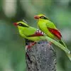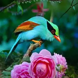蓝绿鹊:中型鸟类,共有5个亚种。体长36-38厘米。尾长,嘴、脚红色。通体羽色主要为草绿色,…