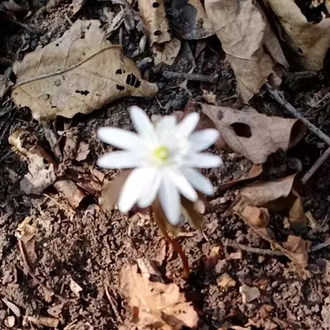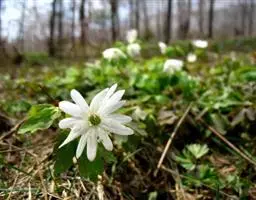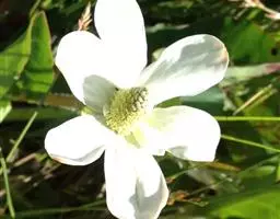 花葶只在上部有疏柔毛;苞片3,似基生叶,无柄,不等大,菱状三角形或菱形,长4.5-6厘米,三深裂;花梗2-3,长4.2-7.5厘米,有疏柔毛;萼片5,白色,倒卵形或椭圆形,长7-10毫米,宽4-5.5毫米,顶端钝或圆形,外面有疏柔毛;雄蕊长约萼片之半,花药椭圆形,长约0.8毫米,花丝丝形;心皮约8,子房密被淡黄色短柔毛,无花柱,柱头近三角形。4月至6月开花。
